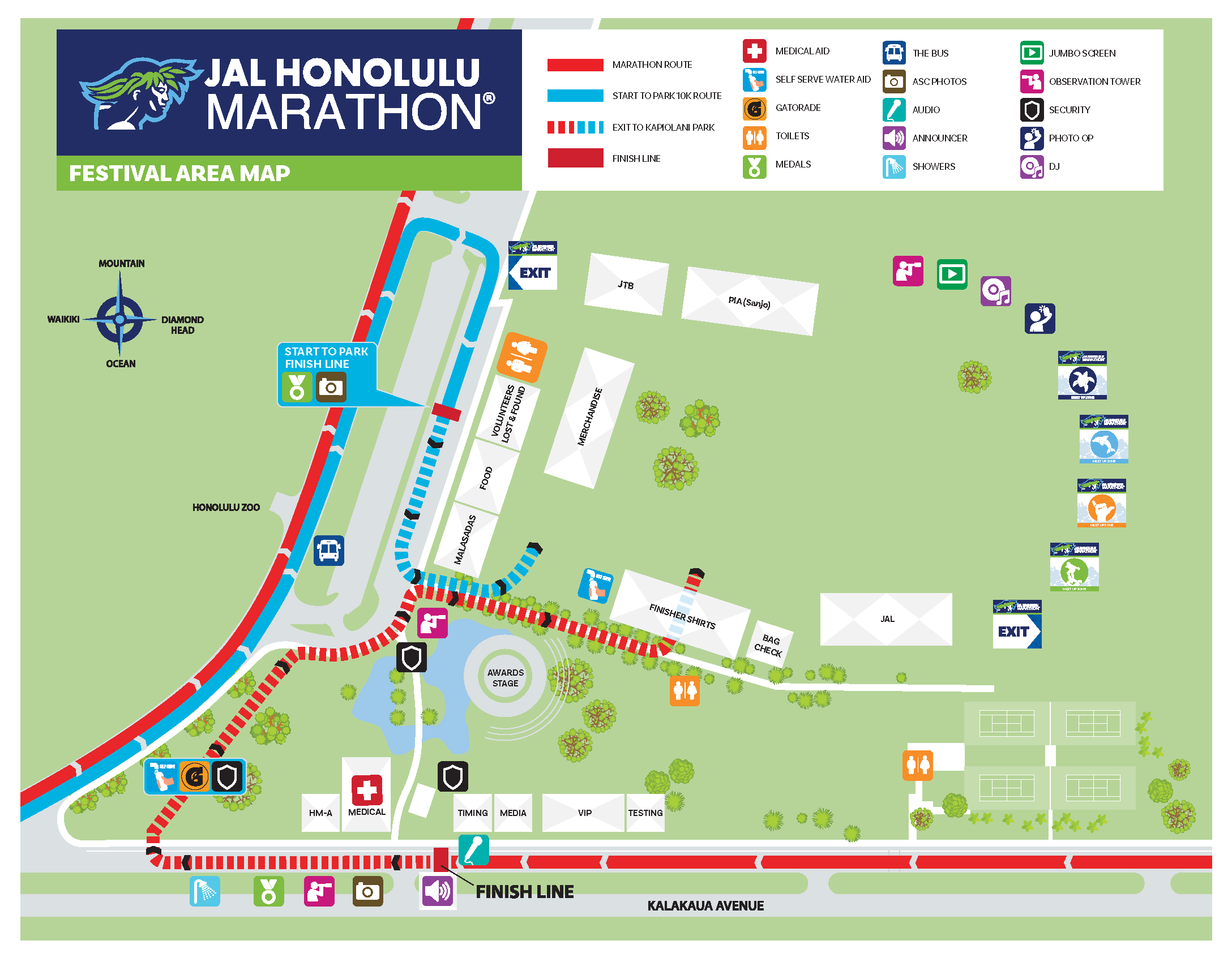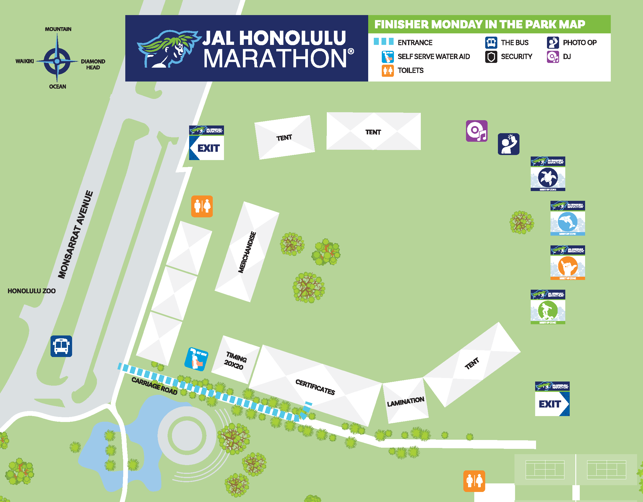 12月15日(月)に実施される「フィニッシャーマンデー(完走証受取)」の会場が、ハワイコンベンションセンターからカピオラニ公園内フィニッシャー・ビレッジに変わりました。