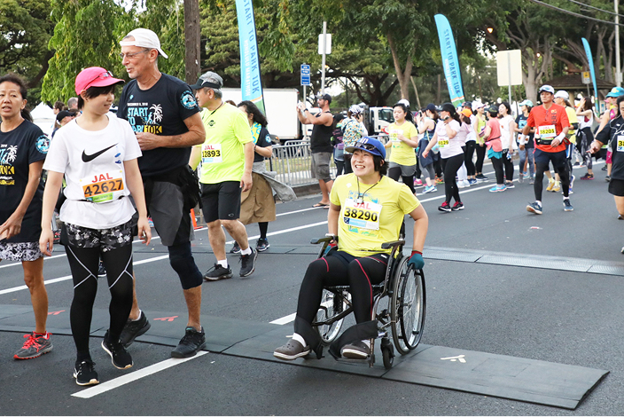 ホノルルマラソン2022では、車いすユーザー・ベビーカー利用者の目線で会場や関連施設のサービスを視察しました。 一部抜粋してご紹介いたします。
