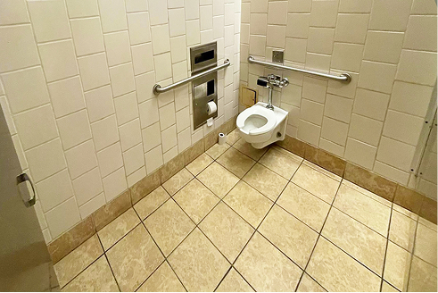 館内トイレはほぼ全箇所に車いすユーザー用の広い個室トイレあり。