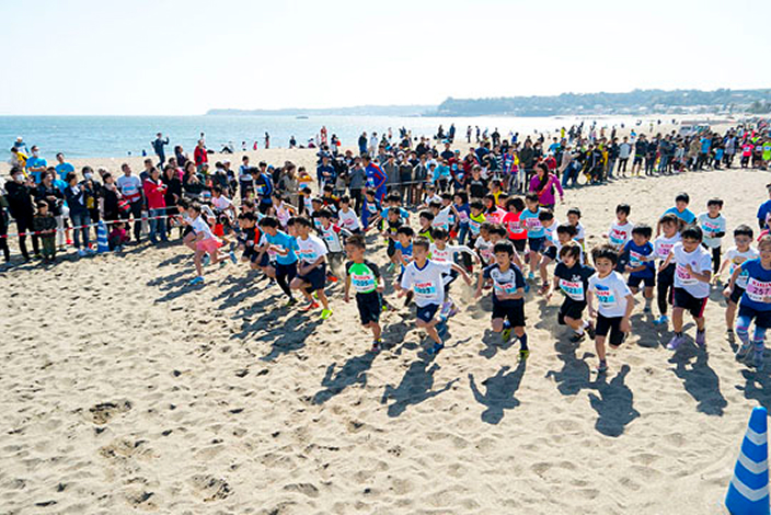 スタート・ゴール横の三浦海岸では、キッズビーチランが開催され、地元グルメ屋台も多数出展している人気イベントです。