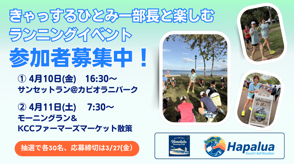 【ハパルア2026参加者対象】きゃっするひとみーと楽しむランイベント@ホノルル 開催!
