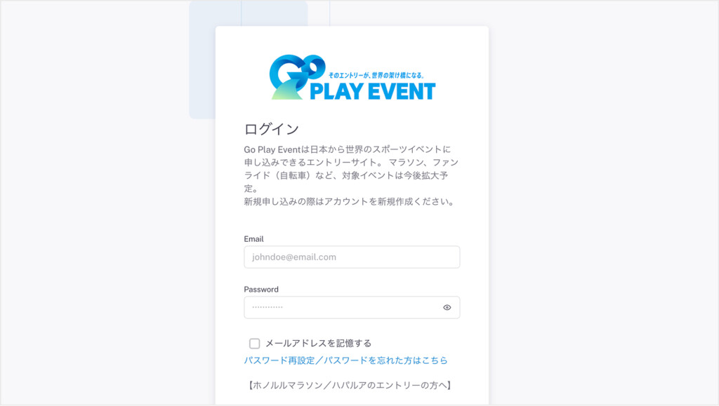 ご注意:エントリー手続きは、エントリーシステム「GoPlayEvent」での受付となります。