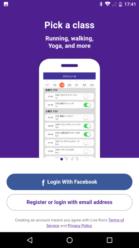 インストール完了後、アプリを起動し「Register or login with email address」よりログインまたはアカウントを作成してください。