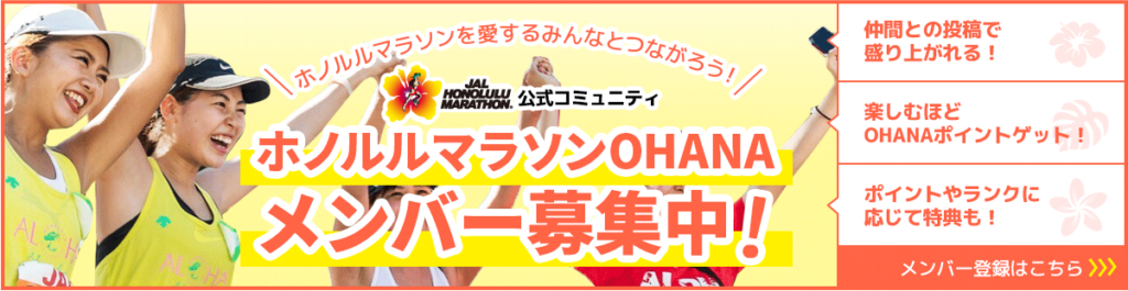 ホノルルマラソン公式コミュニティOHANAはご存じですか?皆さんでつながって交流できるコミュニティで、投稿やコミュニケーションに応じてOHANAポイントをゲットできます。貯めたポイントに応じてマイページにランクが表示されます。今年も「OHANAランク記念品」をホノルルマラソン2025EXPO会場「ジャパンオフィスブース」でメンバーの皆さんへプレゼントします!
