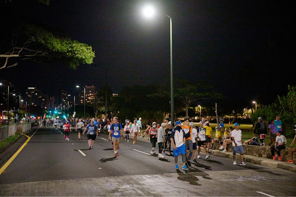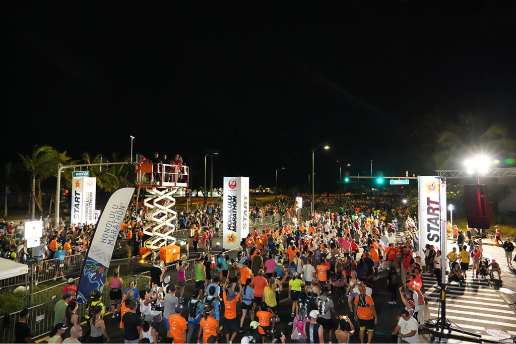 フルマラソン、10K ラン&ウォークは、午前5時(ホノルル時間)に一斉スタートとなります。遅れないように指定されたスタートエリアにお集まりください(少なくとも30分前までにスタートエリアに来られることをおすすめします)。
