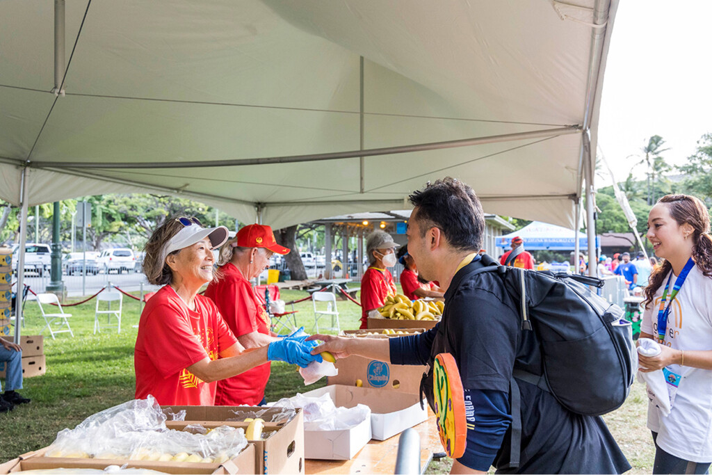 大会当日、フィニッシュエリア内にあるフードテントで、マラサダ、バナナなどをご用意する予定です。